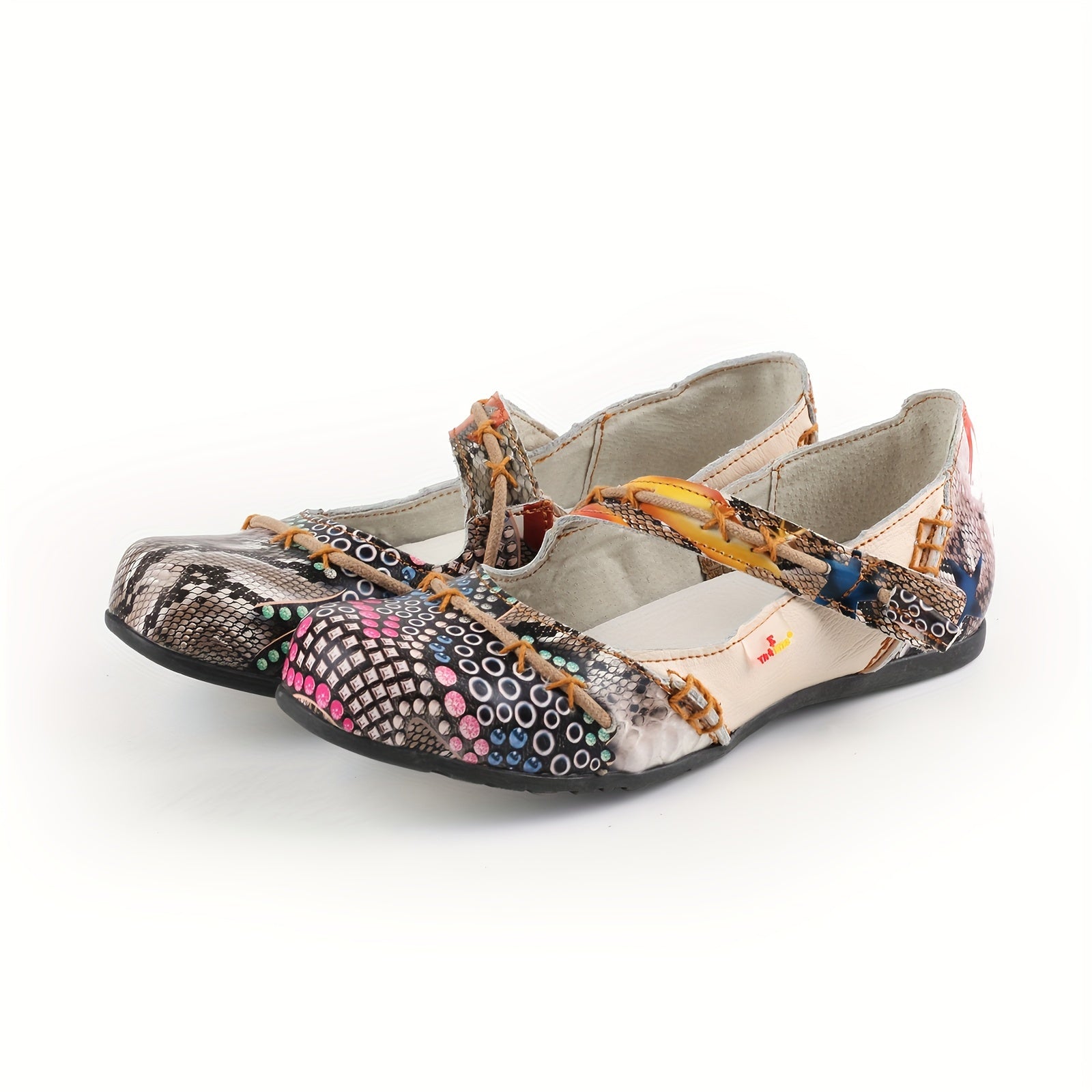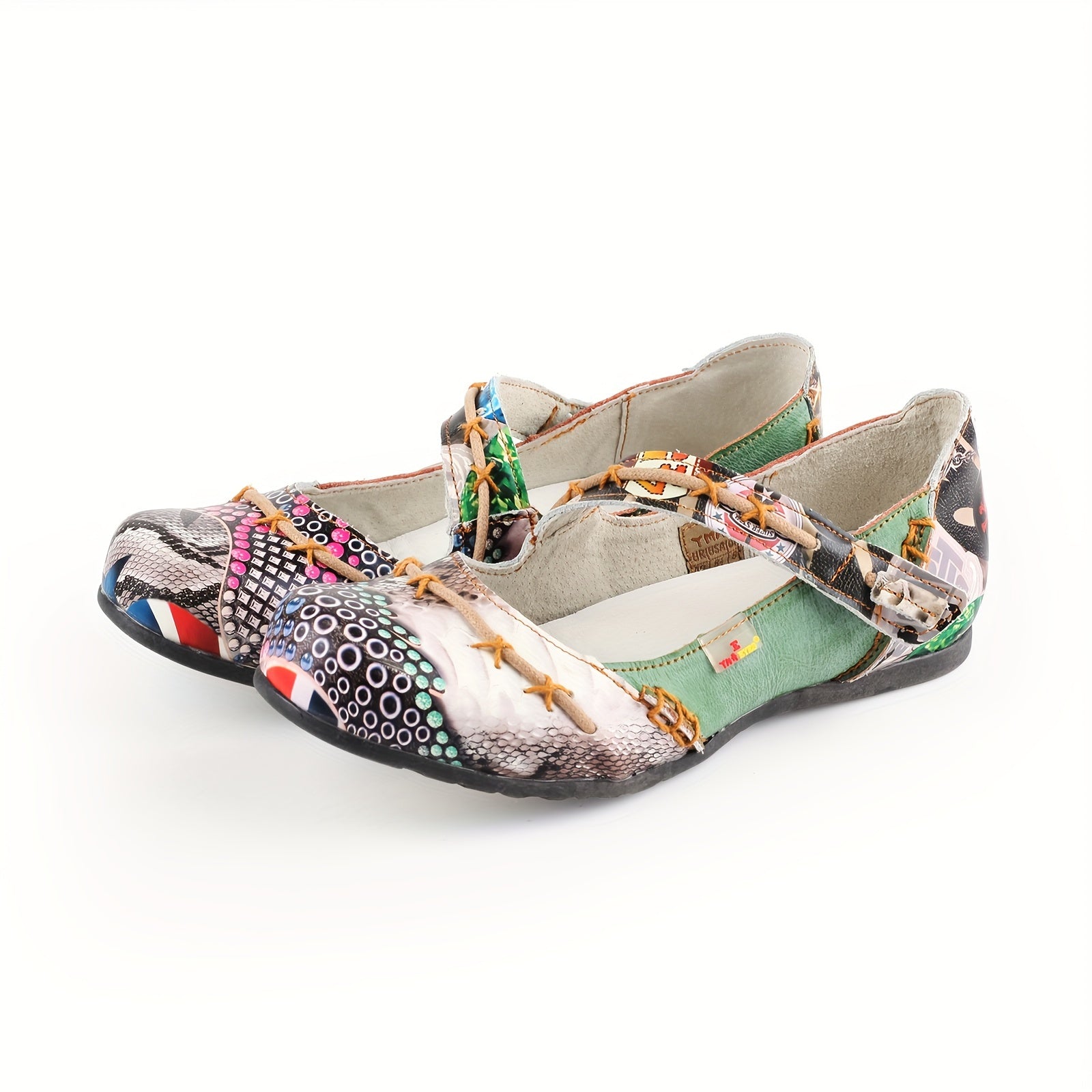 TMA EYES 2024 Women'S Slip-On Flat Shoes - Colorful Circular Print Cover Upper, Hand-Sewn Stitching, Non-Slip TPR Sole, Breathable Summer Casual Shoes for Casual Attire, Unique Shoe Design