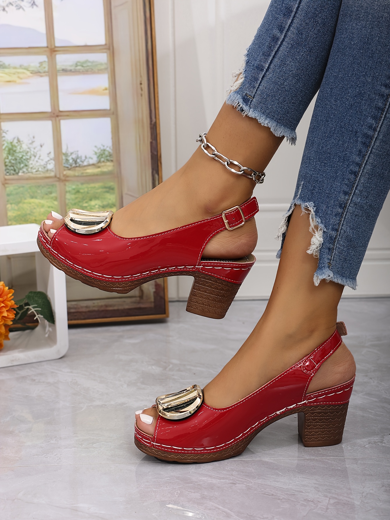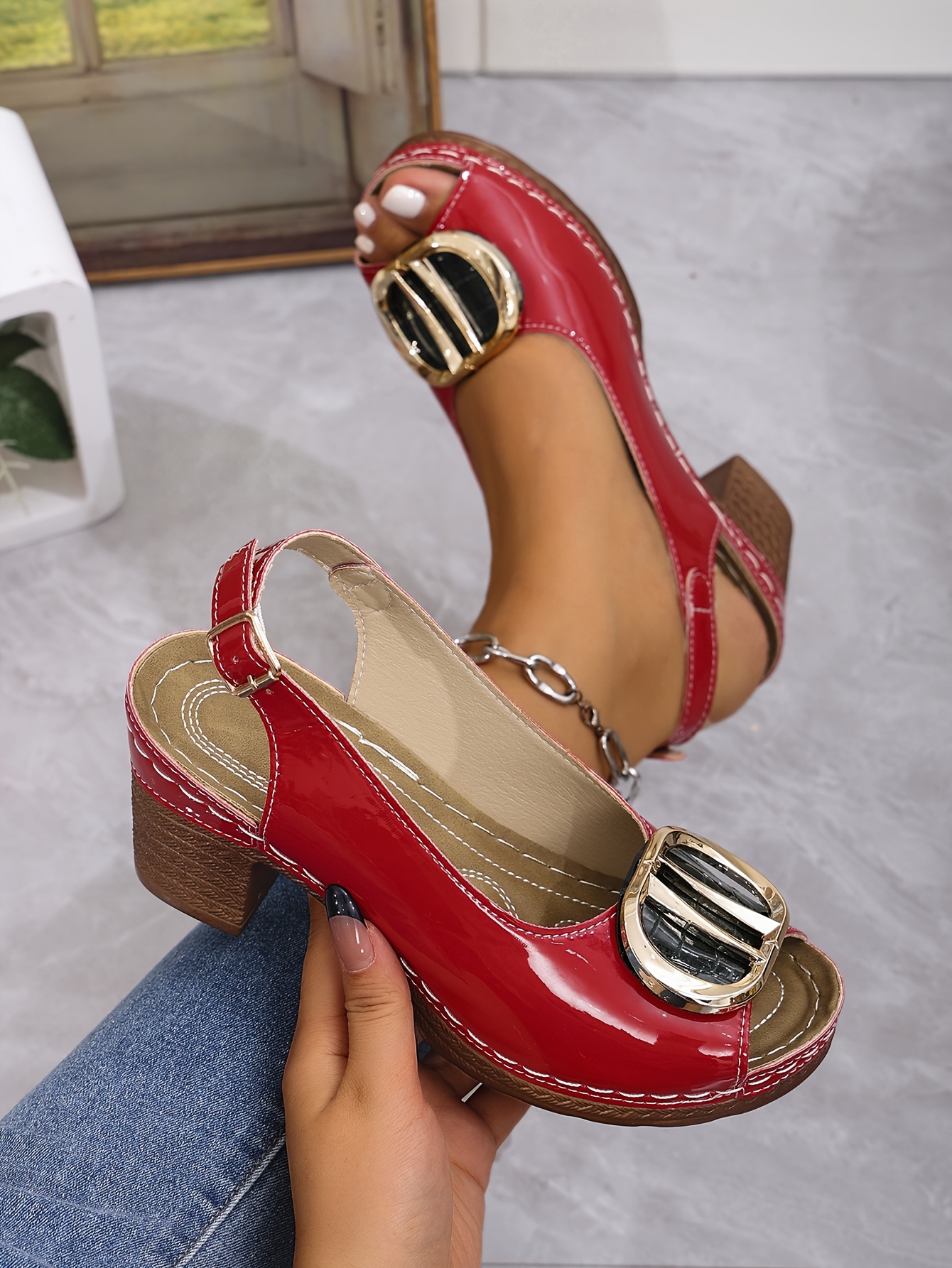 Women's 2024 Summer Fish Mouth Sandals - Chunky High Heel Open Toe with Adjustable Ankle Strap & Buckle Closure, Faux Cover Upper & Rubber Sole, Versatile for Skirts & Casual Outfits, Chunky Heel Sandals, Stylish Footwear