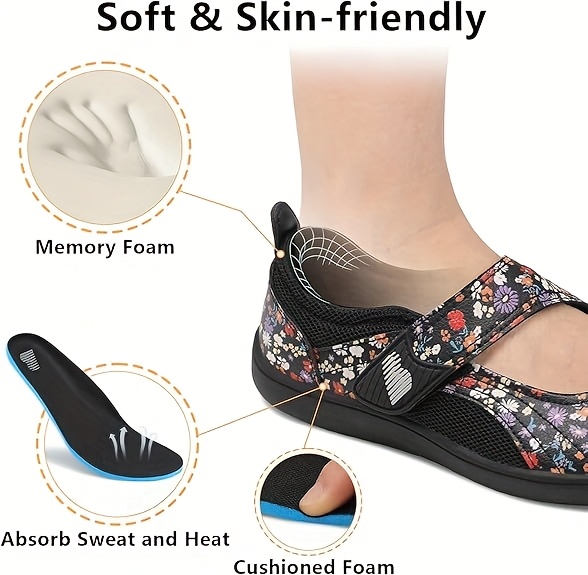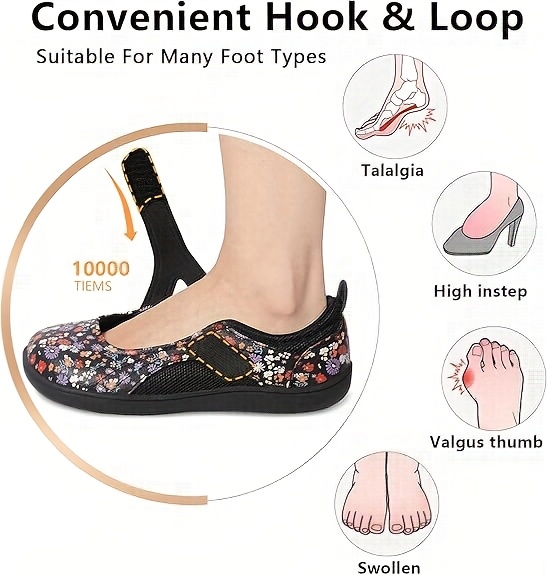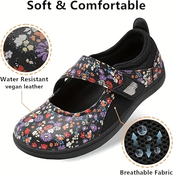 Women'S Plus Size Flat Shoes, Mary Jane Retro Design Walking Shoes, Adjustable Wide Toe, Suitable For All Seasons, Fitness Shoes, Casual Flat Shoes